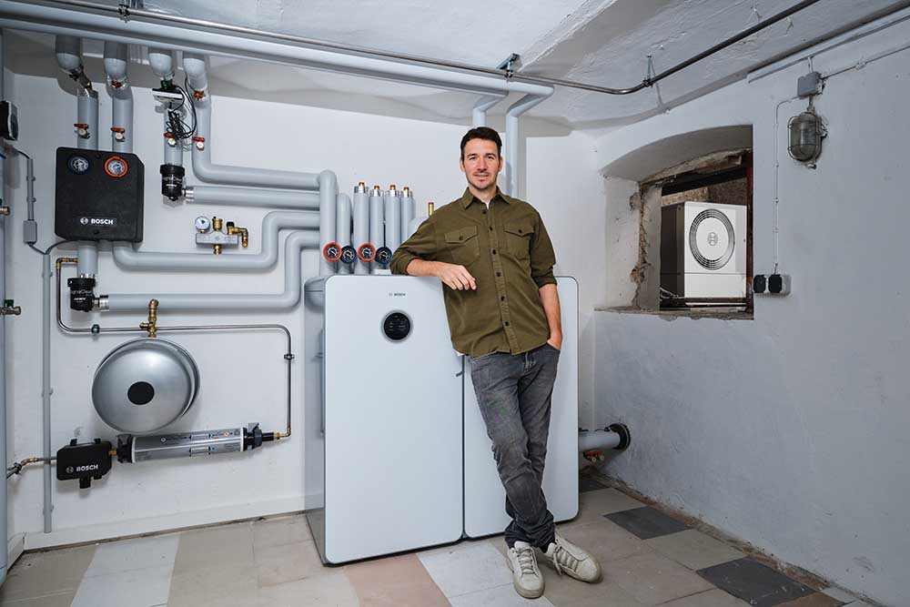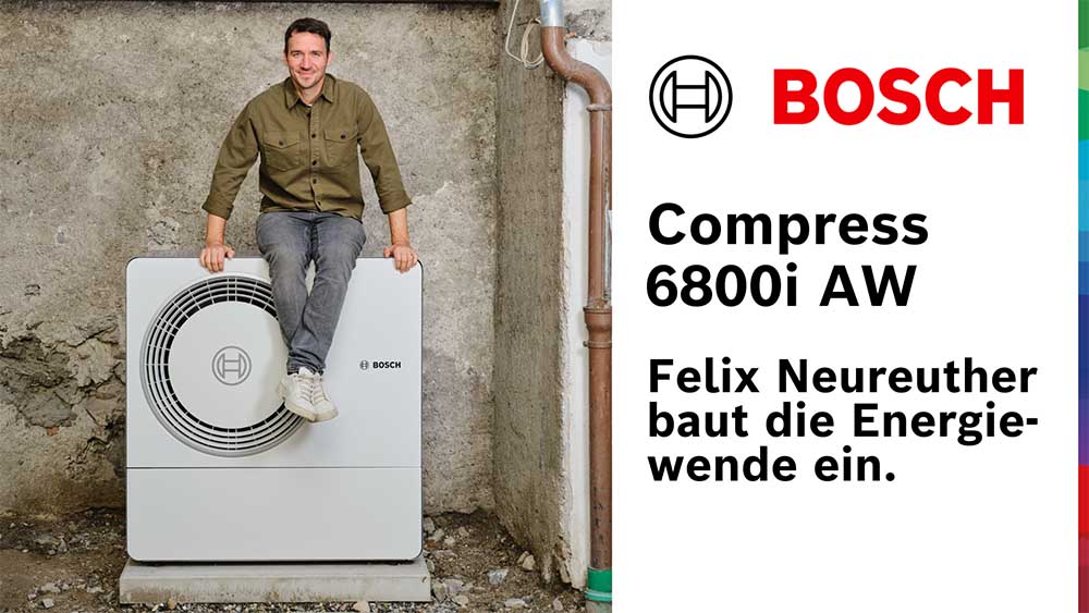 Inszenierung der Kooperation von Bosch Home Comfort mit Felix Neureuther rund um den Einbau der Hybrid-Wärmepumpe Compress Hybrid 5800i G.