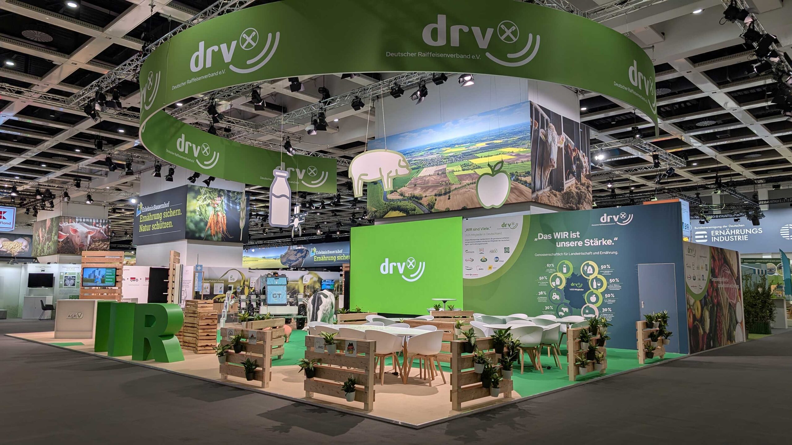 350.000 Messebesucher. Ein Kanzler am Messestand. Und ein Standkonzept, das genossenschaftliche und landwirtschaftliche Werte erlebbar macht. Für den Deutschen Raiffeisenverband (DRV) hat Jeschenko Berlin unter dem Motto „Das WIR ist unsere Stärke“ auf der Grünen Woche 2026 in Halle 3 Idee, Konzept und Realisation des Kooperationsstands der landwirtschaftlichen Genossenschaften übernommen. Das Ergebnis: ein Ort für Dialog mit Entscheidungsträgern der Landwirtschaft, ein 18-qm-Screen mit eigens konzipierten Bewegtbildinhalten, der Farming GT von Agravis als sichtbare und nachvollziehbare Vision moderner Landwirtschaft und der kleinste Raiffeisenmarkt der Welt. Vom Acker bis zum Teller, von der Idee bis zum letzten Messetag: Jeschenko macht die genossenschaftliche Landwirtschaft unterm Funkturm erlebbar.